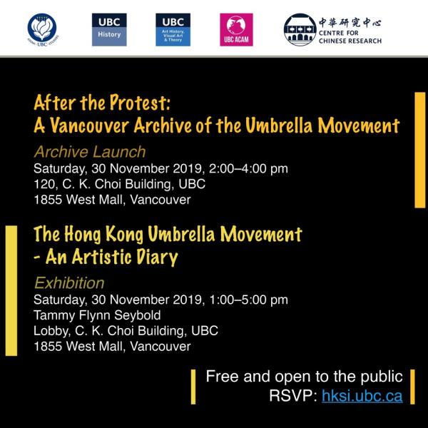 The Hong Kong Studies Initiative is pleased to invite you to this special two-part event to mark the public presentation of “After the Protest: A Vancouver Archive of the Umbrella Movement.”